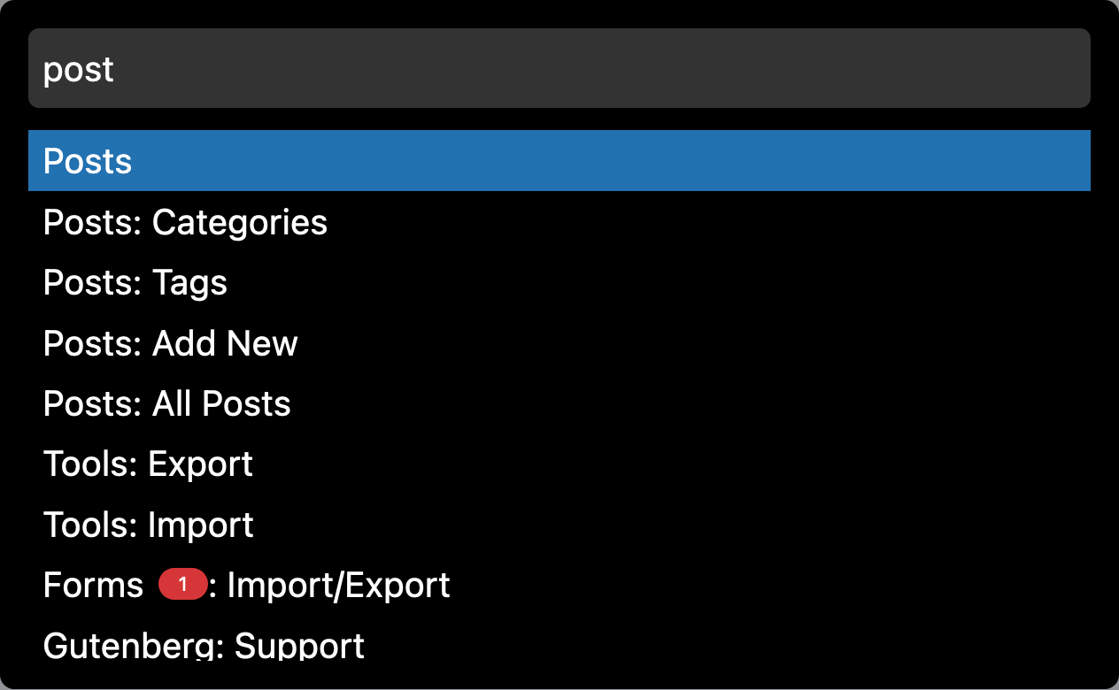 In 2021 I realised that so many tools I used had command palettes, but WordPress did not. I often prefer to navigate tools with the keyboard, and the existing options seemed to be lacking. So I made Turbo Admin.
